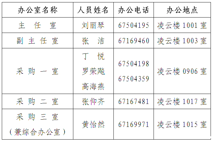 采购与招投标管理中心已按照学校安排,将办公用房调整完毕,现将办公信息更新如下: